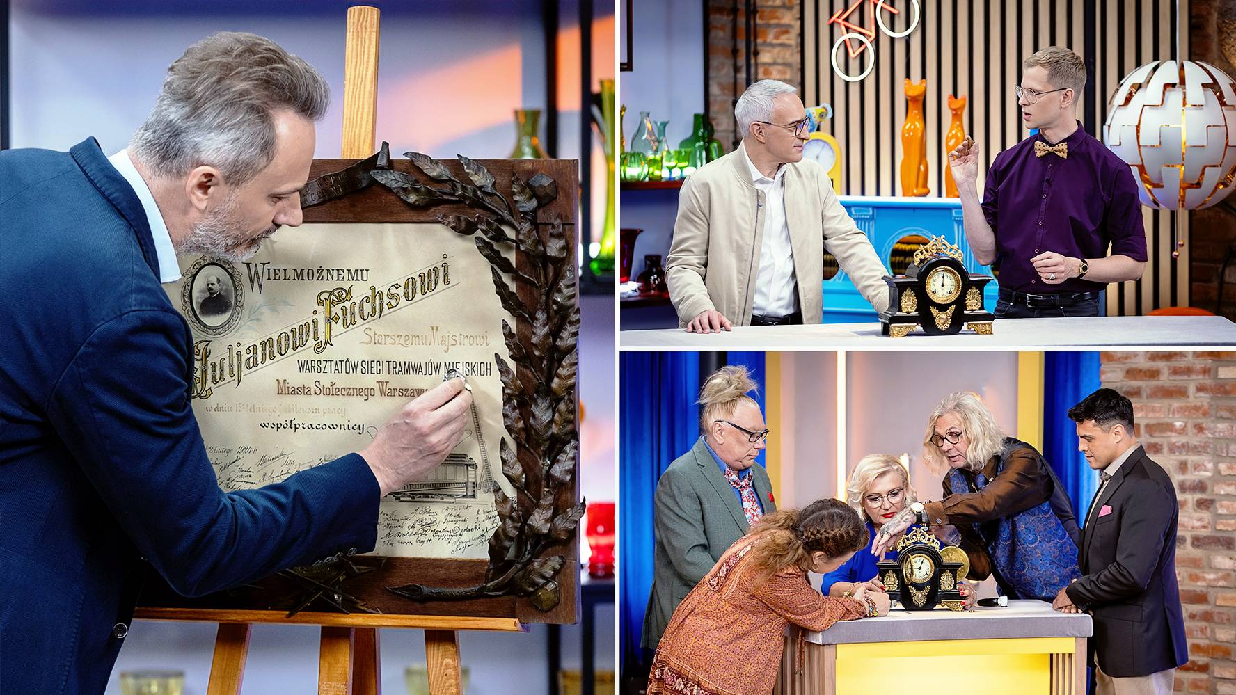 W odcinku poznajemy historie trzech niezwykłych przedmiotów - obrazu o tajemniczym pochodzeniu, zegara z amerykańską przeszłością oraz porcelanowej patery, która rozświetla salę licytacji. Co intryguje ekspertów najbardziej? Pierwsza uczestniczka w tym programie, pani Patrycja, jak sama mówi, ma obraz wart więcej niż tysiąc słów. Dzieło, które przywiozła, zainteresowało Michała Niesiołowskiego. Obraz został zakupiony w antykwariacie berlińskim, a jego historia pozostaje zagadką. W jaki sposób polska pamiątka jubileuszowa trafiła do Niemiec? To wyjątkowy prezent dla Juliana Fuchsa z okazji 15-lecia pracy, wykonany ręcznie w każdym detalu. Znaleziony w Berlinie, a jednak z serca Warszawy. Czy ekspert odkryje na tablicy podpis znanej osoby, który może mieć znaczący wpływ na wycenę?